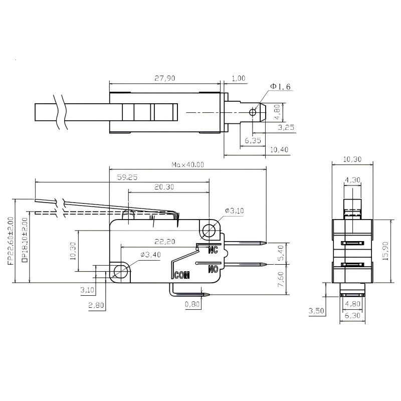 Прецизно окидање у милисекунди: Користи брзи механизам са кратким ходом од 0,5-1,6 мм и подесивом радном силом од 0,25-4Н, пружајући брз одговор без одлагања како би се ефикасно спречиле „лажне окидаче“. Погодно за сценарије високе прецизности као што су контроле врата микроталасне пећнице и индустријски сензори.