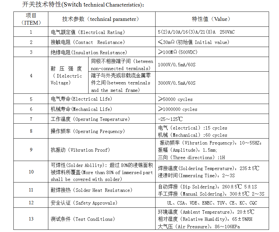 | 1 | Елецтрицал Ратинг | 5(2)А/10А/16(3)А/21(8)А 250ВАЦ | |