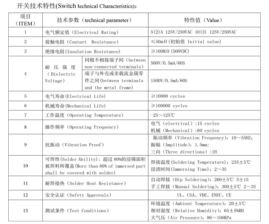 | 1 | Елецтрицал Ратинг | 5(2)А 125В/250ВАЦ 10(3)125В/250ВАЦ | |
