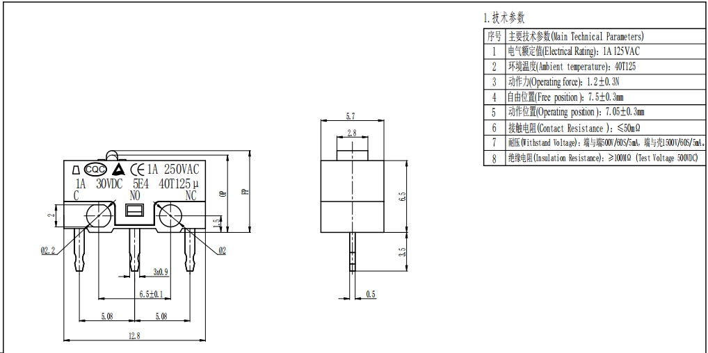 Користећи патентирани механизам брзог окидања, време одзива окидача је ≤8мс, побољшавајући перформансе за 25% у поређењу са традиционалним микро прекидачима. Ход окидача је прецизно контролисан између 0,3-1,0 мм, са опсегом радне силе од 1,5-4Н. Повратна информација о притиску је јасна и оштра, без лепљења или слободне игре, омогућавајући прецизну контролу „лаког додира за повезивање, отпуштање да се прекине“, савршено погодно за сценарије који захтевају високу осетљивост на окидач. Контакти су направљени од легуре сребра и калаја високе чистоће и обрађени прецизним тачкастим заваривањем, са почетним контактним отпором ≤30мΩ. Називно оптерећење подржава 1А/250В АЦ и 3А/125В АЦ, ефикасно спречавајући загревање контакта или сагоревање када струја пролази.