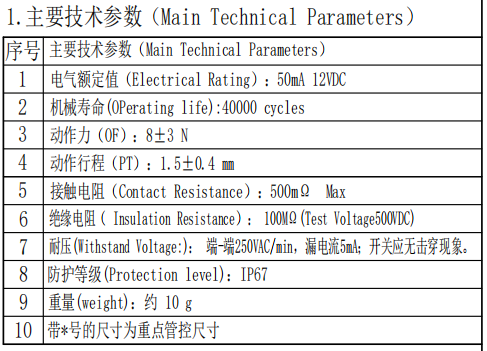 Водоотпоран и непропусан микро прекидач за прашину има мали интервал контакта и брзи механизам акције и механизам за контакт за пребацивање акције са наведеним можданим ударцем и силом покривена је шкољкама, а споља је и облик је мали.