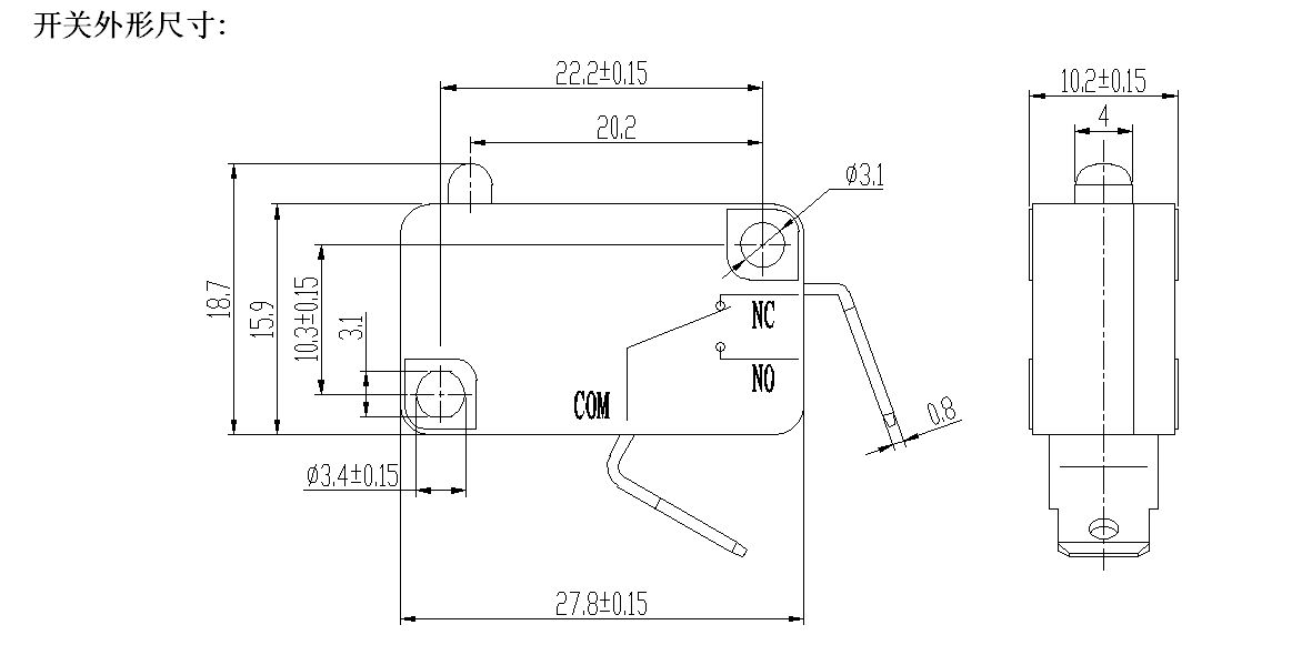 Параметар микро прекидача (спецификација)