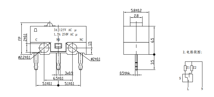 | 1 | Електрични назив: 1А/3А 250ВАЦ |